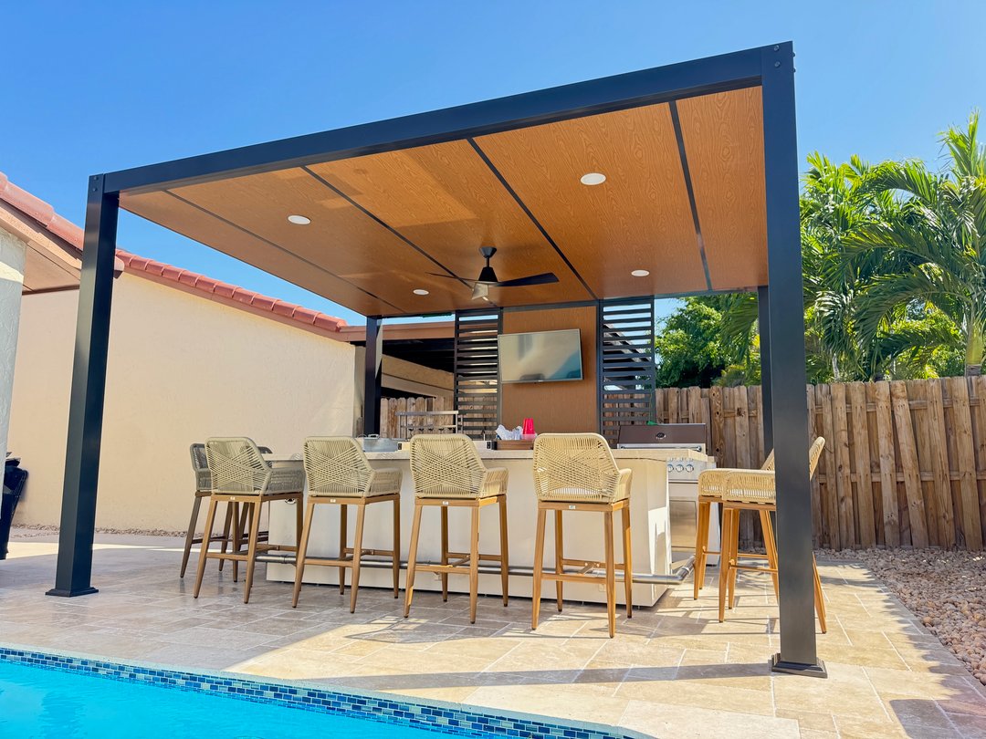 We build custom outdoor kitchens and pergolas made for fun, food, and family time.